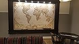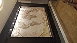 We have a very large room and originally planned on purchasing one of the larger maps. It is not a Gail-Peters map -however, this one was a better world representation than most, and also allowed us to build a large frame with built-in lighting around the map that matches our book shelves. Good geographic detail and place names. Since the wall had a ledge at about 6.5 foot height, we actually mounted the map onto a plywood base that we had fastened onto the wall.. We used store bought wall paper adhesive ( about $10 at Home Depot) and it took my son and I about 30 minutes to hang the three panels. We had to peel one partially off at one point to align it a little better…but that was no big deal. We didn’t start in the middle as recommended (would have been easier) and simply used a 6 foot level to keep things level and plumb. Two people make the job super easy; one person would will make the job tedious and a little cumbersome. Nevertheless, one person can do it. I started on my own with the first panel and my son happened to come in just as I had it on the wall, the other two panels were easy peasy.