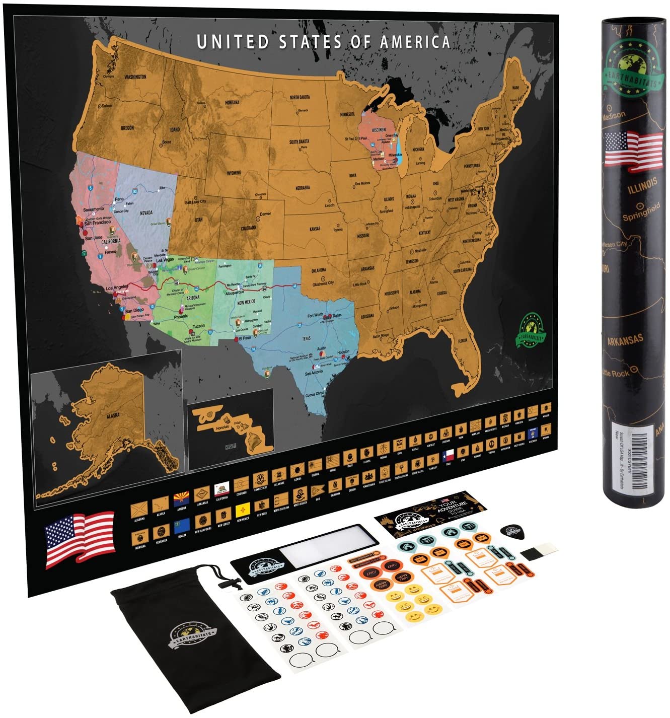 Scratch Off Map of The United States – Deluxe Travel Map with 50 State Flags and Landmarks – Tracks Where You Have been, Full Accessories Set Included, Perfect Gift for Travelers, by Earthabitats